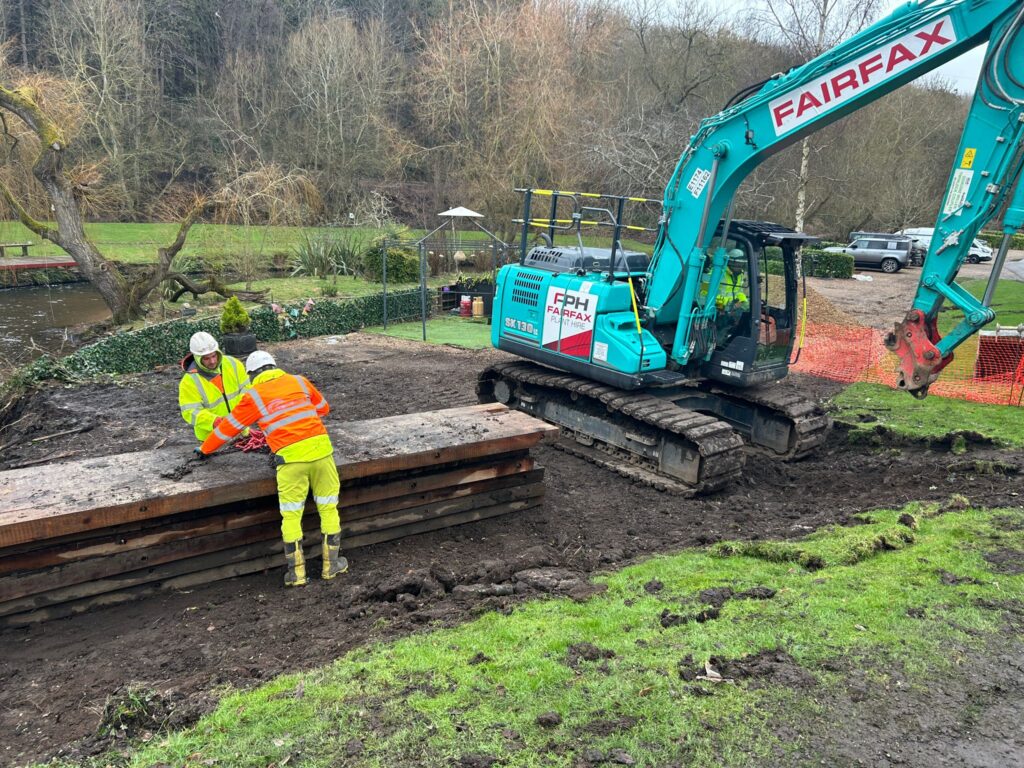 See video of the sheet pile installing to assist with embankment erosion and flood mitigation, to preserve the clients business and income.