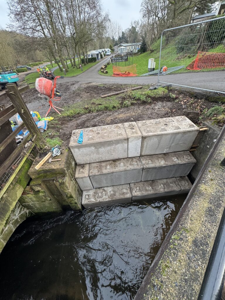 The scheme also included the installation of Legato block retaining walls with mass concrete backing, designed to stabilise the embankment and prevent further erosion caused by localised flooding events.